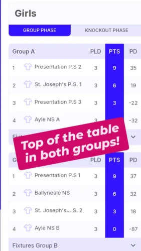There were some excellent matches across both groups, with our teams showing great determination and skill. At the end of the group stages, the Presentation Pythons topped Group A, while the Presentation Panthers finished top of Group B, meaning both teams progressed to the semi-finals.