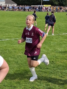 The 3rd and 4th Class athletes tackled an 800m course, while the senior pupils from 5th and 6th Class faced the full 1000m. Competing in the Major Schools Section, each race saw up to 100 children on the start line — a real test of stamina and determination.